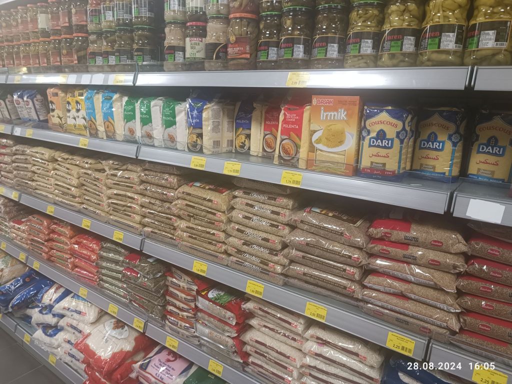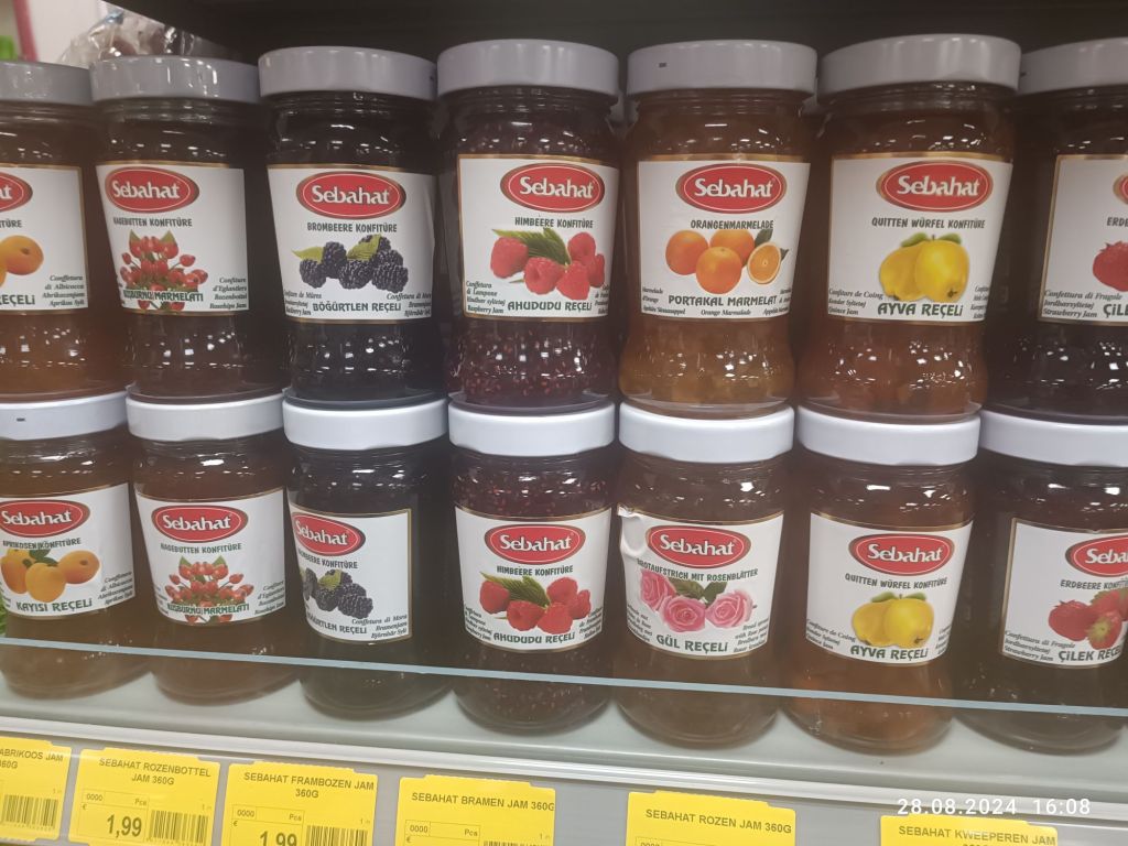 Kupiłam też dżem. Będzie do naleśników. Do tej pory kupowałam w polskim sklepie Łowicza, bo jest naprawdę dobry. Dzisiaj spróbowałam tureckiego, malinowego. Konsystencja rzadsza i drobinki owoców. Mój werdykt? Pyszny 🙂 A obok dżemów stoi np puder pistacjowy.