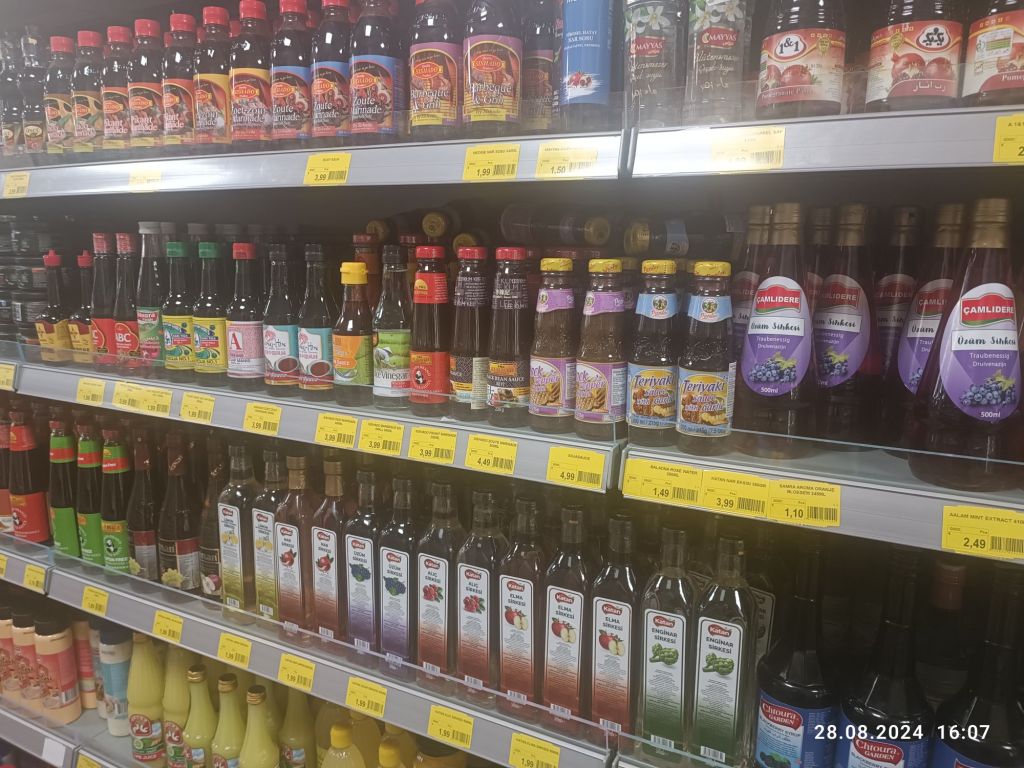 W żadnym markecie nie znalazłam półek tak zapełnionych octami winnymi, sosami, oliwami z oliwek, kwasków cytrynowych czy limonkowych, jak tu.