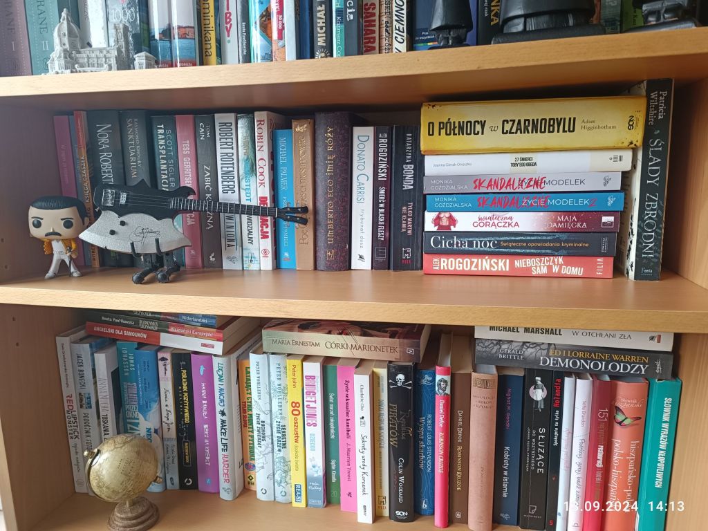 Zrobiłam porządki na regale z książkami. Jeden mam w salonie a drugi w najmniejszym pokoju. Kurzu od groma. Wszystko od nowa układałam, co zresztą lubię robić. Książki zawsze układam tematycznie.