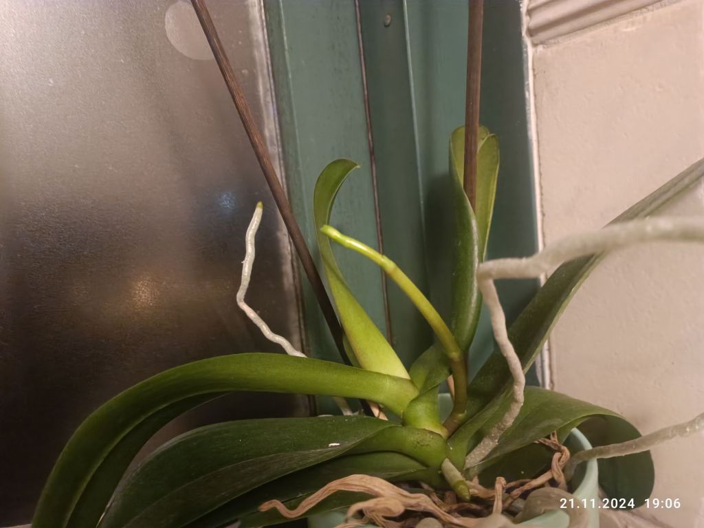 Moje storczyki, które zadomowiły się w łazience, miały okres spania. Zrzuciły ostatnie kwiaty i wypuszczały tylko te swoje wężowe pędy. Wreszcie zauważyłam, że zaczęły wypuszczać łodygi, na których pojawią się niebawem kwiaty.
