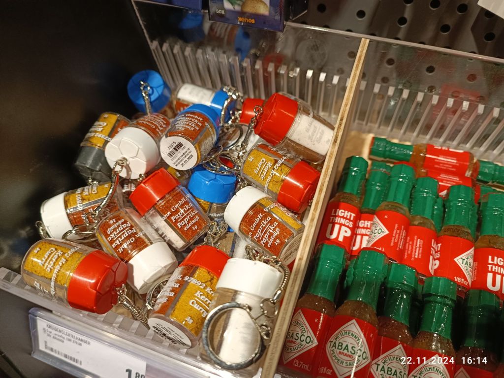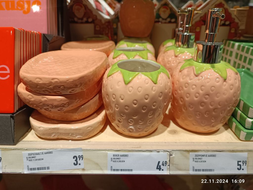 Na uwagę zasługuje też truskawkowy komplet do łazienki, czy mini breloki z malutkim pojemnikiem z przyprawami, m.in solą i pieprzem.