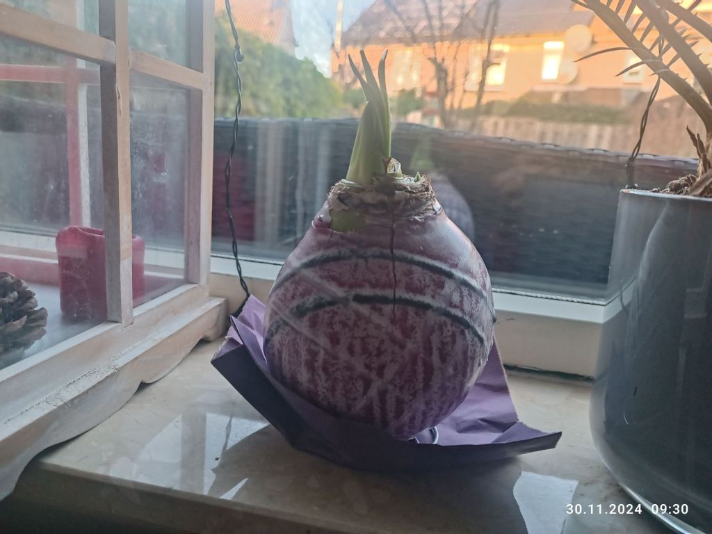 Mój amarylis znajduje się na parapecie w salonie. Muszę znaleźć jakąś fajną podstawkę dla niego w kringloopie.