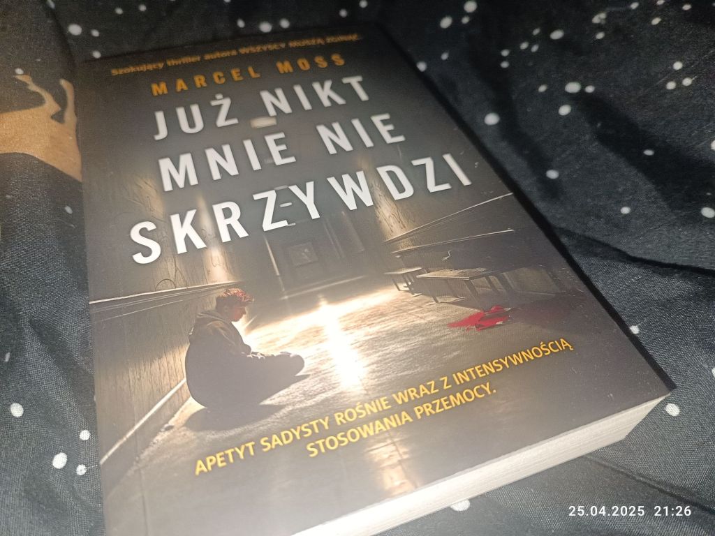 Tą książką Marcel Moss dał czadu. O tym jak dużego, może świadczyć to, że czytałam na raty. Nie mogłam przebrnąć przez niektóre sceny, opisy, bo tak były ciężkie. Mój mózg stawał dęba. Podobnie miałam z „Chłopkami”. Słucham podcastów kryminalnych i są tam opisane sceny znęcania się psychicznego, fizycznego i morderstw. Ale nie tak dobitnie (bo czasem w źródłach jest mało informacji a czasem podcasterzy po prostu oszczędzają szczegółów), jak w tym thrillerze. Autor się nie cackał z opisami. Jest to mocny thriller z domieszką psychologii i kryminału.