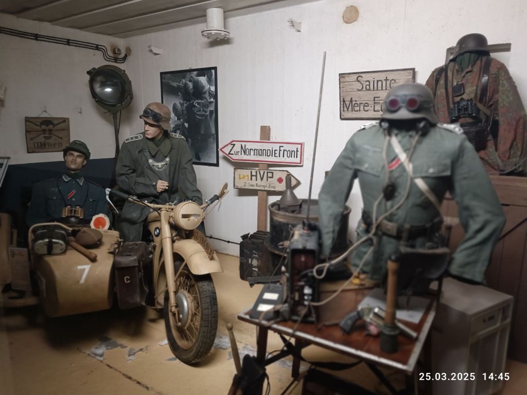 W środku muzeum jest sporo do obejrzenia. Możemy zobaczyć pojazdy używane na wojnie, broń a w gablotach ubiory żołnierzy, czy manekiny przedstawiające scenki wojenne. W marcu, wybitnie w tym miejscu było zimno, więc warto się ciepło ubrać, tym bardziej, że w murach bunkru można poczuć chłód do kości. Polecam też odwiedzić mały sklepik z pamiątkami.