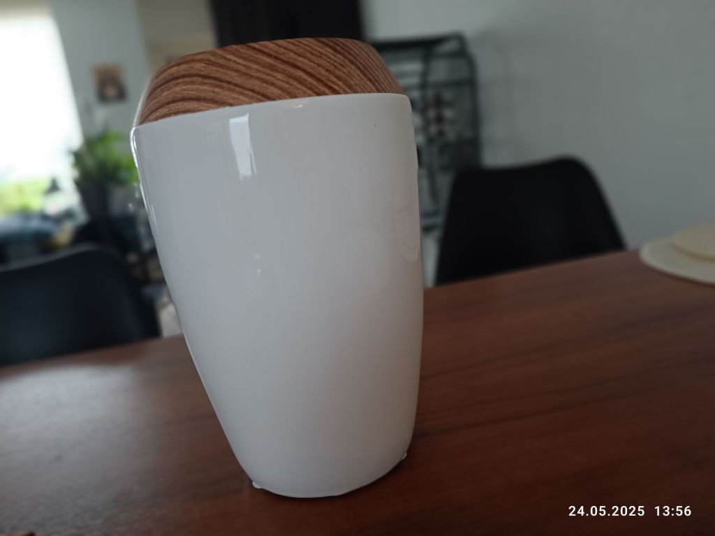 Do tego odrzuciłam biały wazon z drewnianym elementem i dozownik do mydła do kuchni.