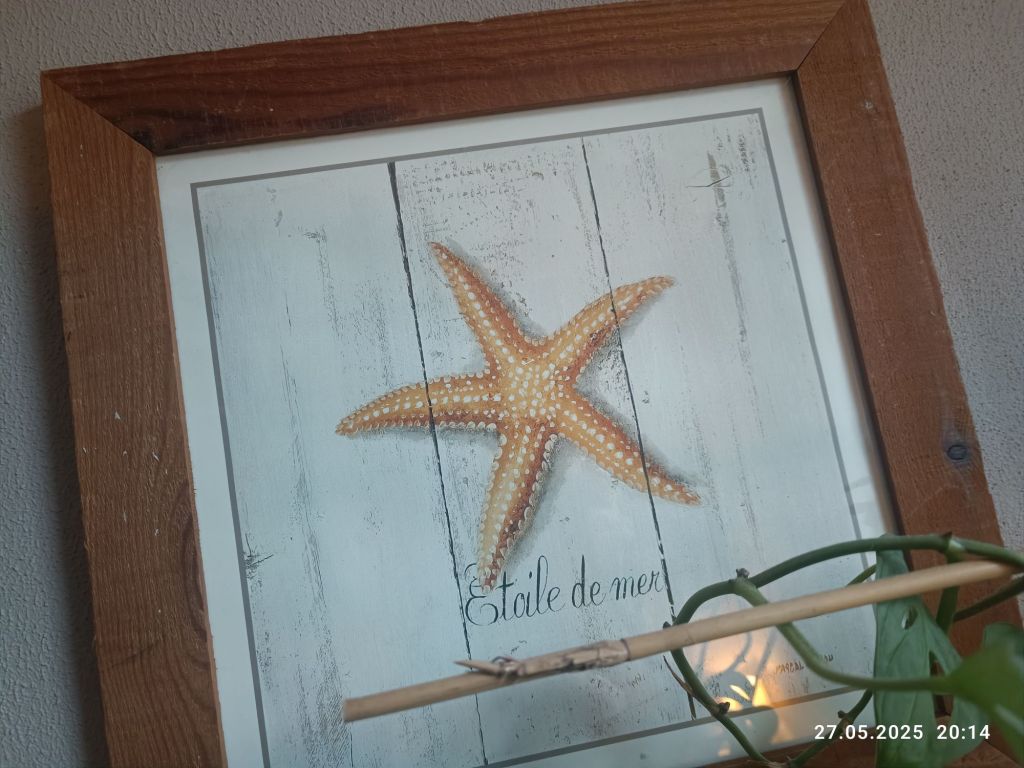 Spojrzałam jeszcze na grafiki i obrazy. Lubię morskie klimaty, dlatego ucieszyłam się, że znalazłam prostą grafikę z rozgwiazdą w drewnianej ramce. Świetnie pasuje do sypialni i już wisi: