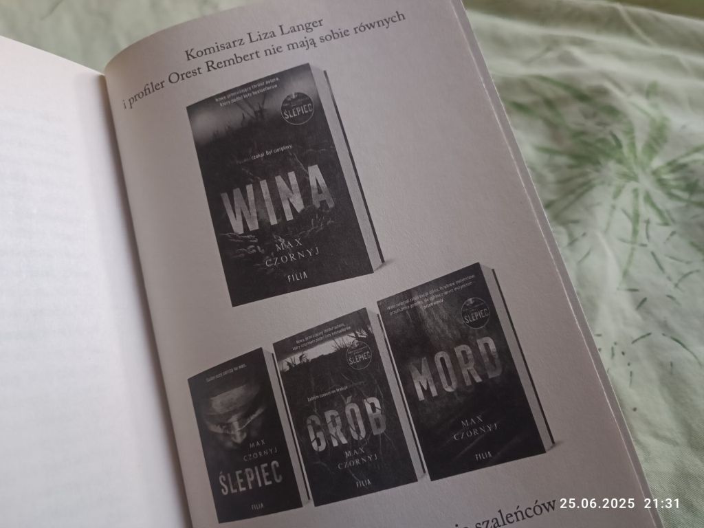 Zaczynając tę książkę, wiedziałam, że jest to jedna z kilku części serii o komisarz Langer i profilerze Rembercie: „Ślepiec”, „Grób” i „Mord”.