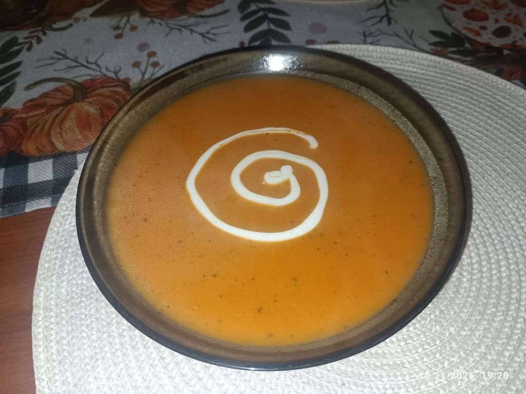 O tej porze roku uwielbiam jeść zupy. Tak w ogóle, to ja zupy kocham. Nie tylko polskie. Jesienią staram się gotować je często. W tym roku pierwszy raz zrobiłam zupę dyniową. Inspiracja i przepis – standardowo z TikToka. Nie przypuszczałam, że jest tak pyszna. Podpiekłam w piekarniku dynię piżmową, dwa pomidory, dwie papryki i ząbki czosnku. Potem warzywa zblendowałam i dodałam do wcześniej ugotowanego bulionu. Należy ją porządnie doprawić, bo inaczej może być mdła. Do tego bagietka podpieczona z żółtym serem i ciepły obiad gotowy 🙂