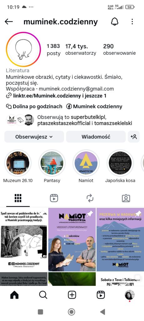 A jeśli ktoś, tak jak ja, uwielbia Muminki, to polecam konto na Instagramie: muminek.codzienny.