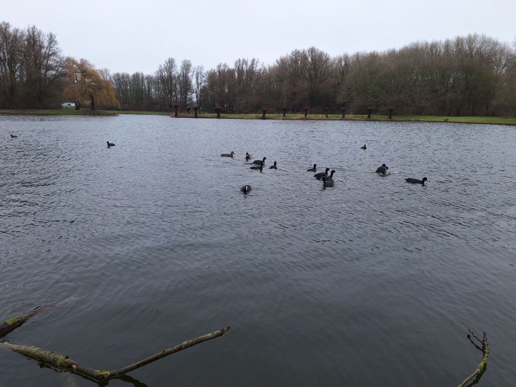 Poszłam na spacer do parku, żeby nakarmić ziarnem ptaki. Były niemal same łyski. Kilka kaczek i żadnych łabędzi. Ledwo zrobiłam kółko wokół jeziorka i zaczęło padać. Pogoda była paskudna. Już się wprawdzie przyzwyczaiłam, że w tygodniu jest słońce a w weekend deszcz. Takie uroki Holandii.