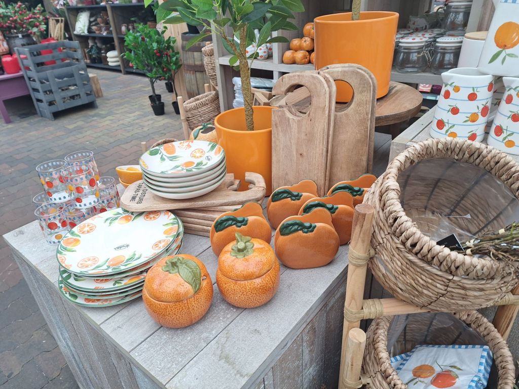Motyw cytrusów też był. Oprócz sztucznych drzewek, oglądałam szklanki, półmiski i inne miseczki z owocami pomarańczy i cytryn.