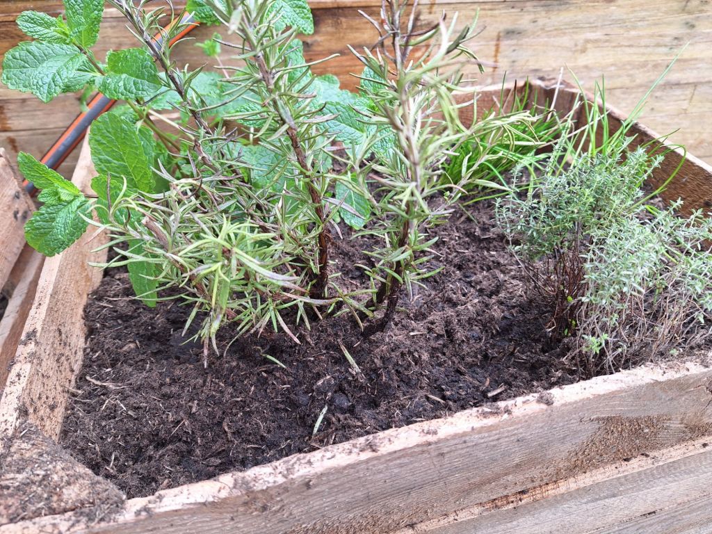 Pojechałam też po pracy w okolice Rotterdamu, żeby kupić dwie drewniane skrzynki po owocach. Znalazłam je na Marktplaats. W centrum ogrodniczym kupiłam kilkadziesiąt litrów ziemi i napełniłam owe skrzynki. W jednej rosną już zioła, które przetrwały od zeszłego roku a w drugiej znajduje się cebula dymka i pietruszka (nać).