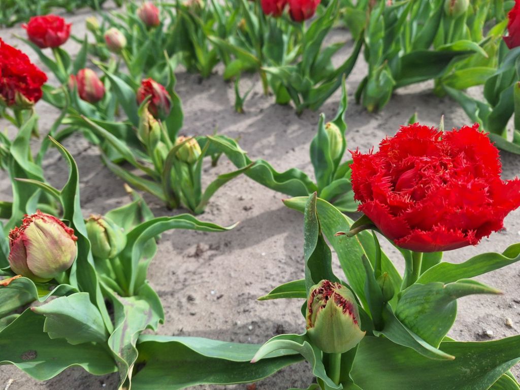 Dzięki umiejętnościom łączenia odmian wczesno, średnio i późno kwitnących, wstępnemu schładzaniu niektórych cebulek i stosowaniu różnych technik sadzenia, dba się o to, aby tulipany zostały w pełnym rozkwicie jak najdłużej. Ogród otoczony jest polami produkcyjnymi szkółek, tworząc idealne tło.