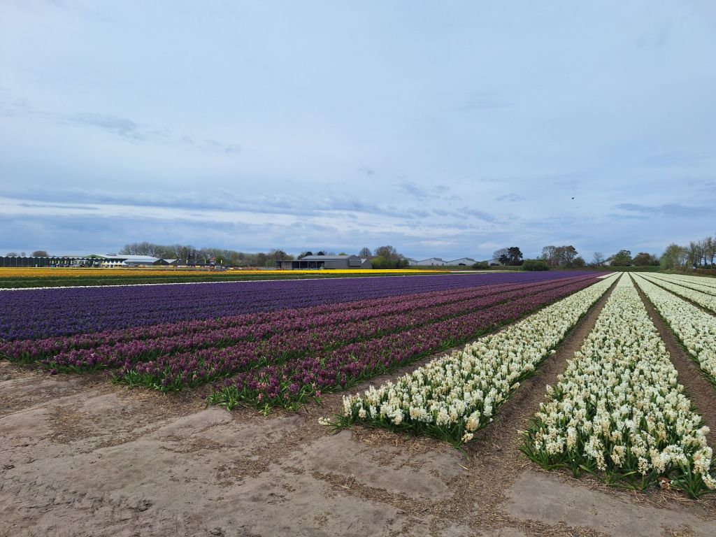 Nie było to daleko, bo około godziny jazdy od Hellevoetsluis. Parking bezpłatny (albo jak kto woli, wliczony w cenę). Dojeżdżając do miejsca, już z daleka widać pola żonkili i pięknie pachnących hiacyntów, których kwiatostany są naprawdę pokaźnych rozmiarów.