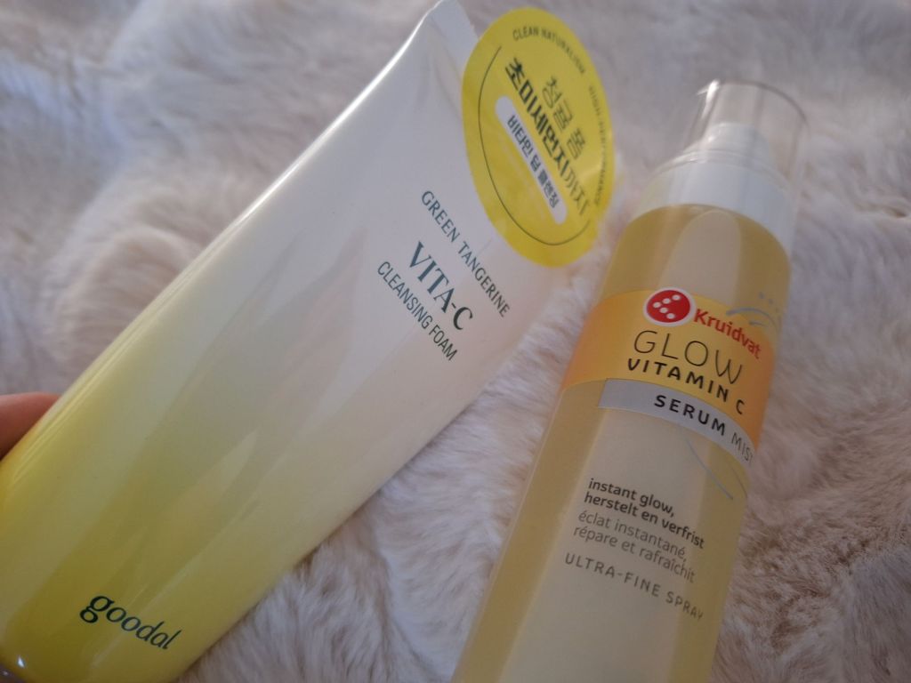 Żółty kolor, czyli witamina C. Ten krem oczyszczający widzę pierwszy raz. Jest koreańskiej marki Goodal. Pachnie lekko cytrusowo, jest biały i gęsty. Nadaje się raczej na wieczorne oczyszczanie, po całym dniu trzymania skóry twarzy w kurzu, pocie itp. Usuwa brudy dokladnie. Drogeria ma też swoje produkty, jak np ten tonik rozświetlający w sprayu z wit. C. Kupiłam z ciekawości i już wiem, że nie ostatni raz. Ma przyjemny zapach i ładnie rozświetla skórę i dodatkowo odświeża.