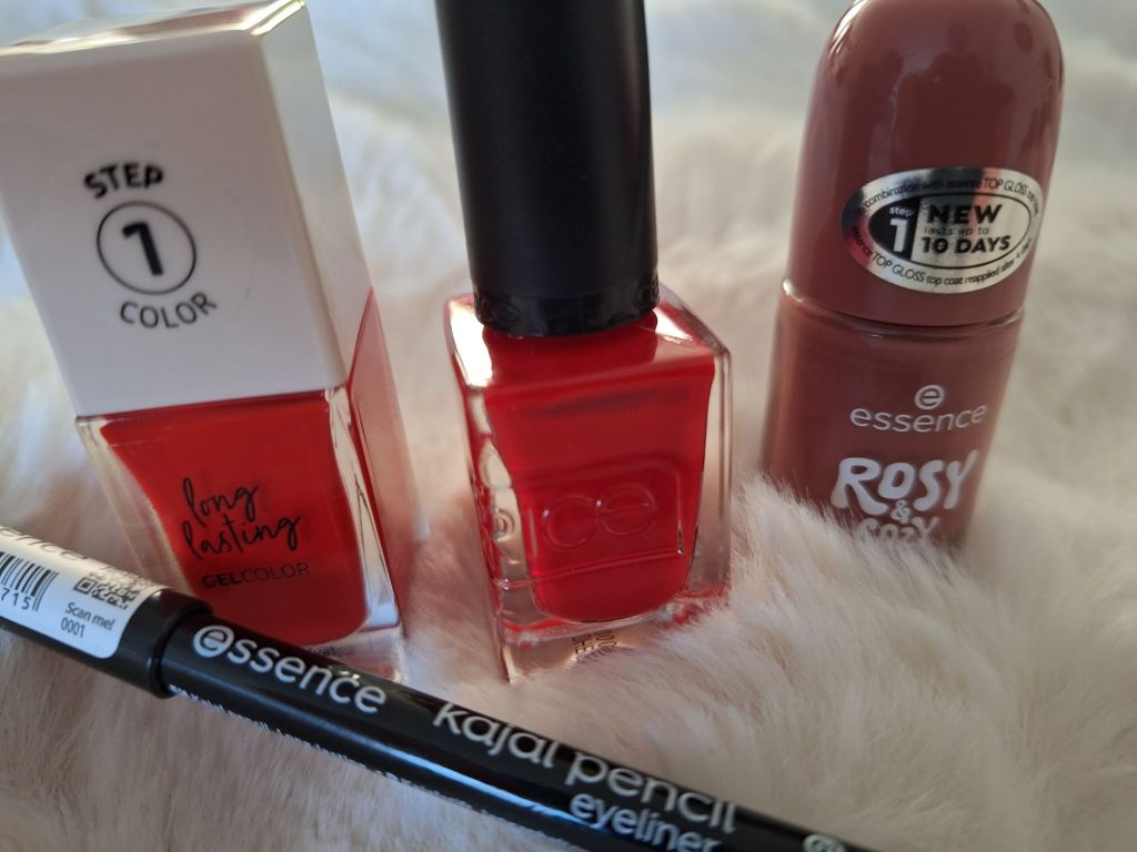Kolorówka powiększyła się o nowe marki, np tę z Shein, czyli Sheglam. Ja chciałam tylko lakiery do paznokci i ulubioną czarną kredkę do oczu marki Essence. Dla mnie jest ona nie do zdarcia. Lepszej nie miałam. Lakiery wpadły 3: czerwone i beż. Nigdy nie miałam chyba beżowych paznokci a te czerwone niby się trochę odcieniem różniły, ale w domu stwierdziłam, że chyba są takie same 🙂