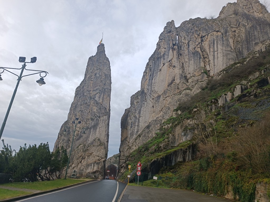 Największe wrażenie zrobiła na nas Skała Rocher Bayard. Znajduje się przy wjeździe do miasta. Ulica Rue Defoin przedziela ją na pół. Skała ma prawie 40 metrów i jest jakby przyklejona do klifu nad Mozą. Legenda mówi, że skałę przepołowiło kopyto konia Bayarda należącego do synów Aymona – bohaterów średniowiecznego poematu rycerskiego.