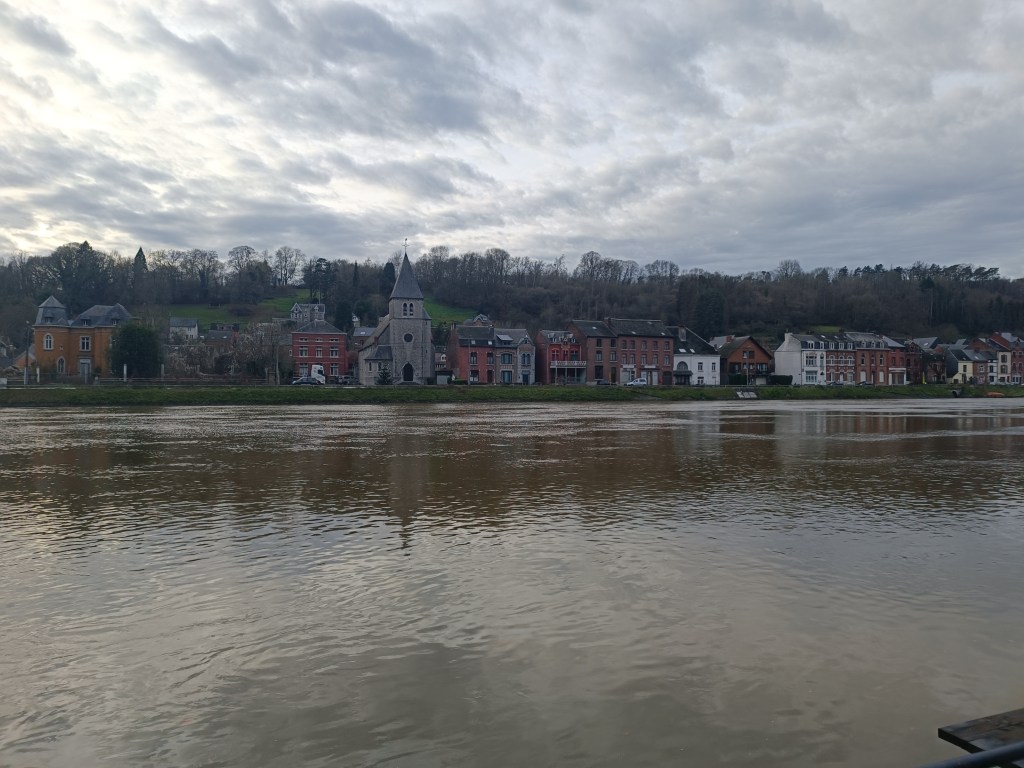 Dla tych, którzy chcą zwiedzać miasto pływając po Mozie, czekają specjalne łodzie. Na deptaku przy rzece znajdują się co kilkaset metrów budki z biletami. My chodziliśmy pieszo. Auto zostawiliśmy na parkingu knajpki znajdującej się ok 2 km od Skały Rocher Bayard. Poszliśmy też do tamtejszego Carrefoura. Marsz trochę ciężki, bo pod górę.