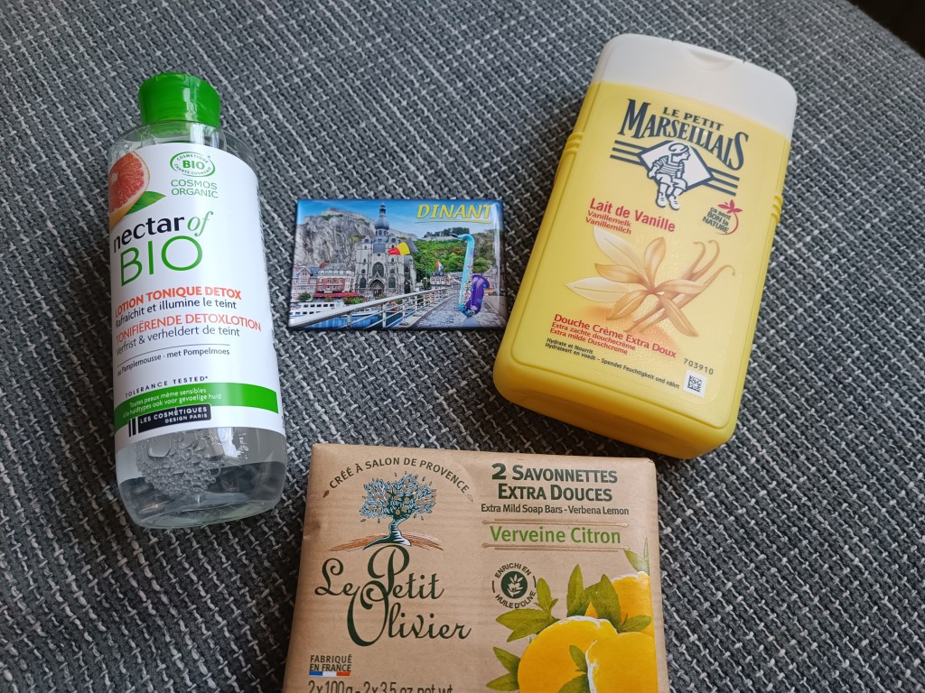 Co przywieźliśmy że sobą? Pan Mąż piwa belgijskie, ja natomiast ser, magnes na lodówkę i trzy francuskie kosmetyki: żel pod prysznic, tonik i mydło cytrynowe, które pięknie pachnie. Te rzeczy są tam naprawdę tanie.