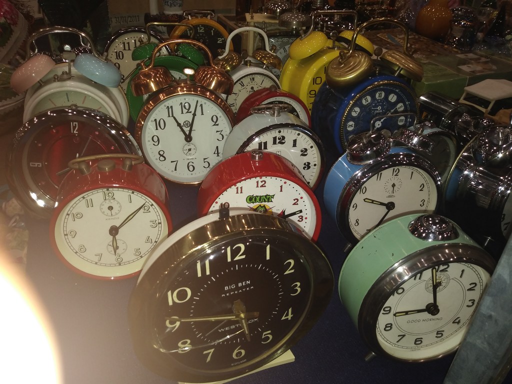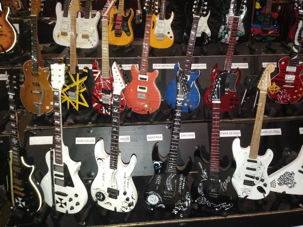 Kupiłam 1 budzik, bo nie mogłam się powstrzymać 🙂 Uwielbiam zegarki! Puszki vintage. Widziałam pana, który dokładnie oglądał taką puszkę przed zakupem przez…lupę!!!Lampy 🙂5 miniaturek w ślicznych buteleczkach przyjechało ze mną do domu. Dałam za nie 5 euro.Gitary w mini wersji największych gwiazd rocka! Ja pokusiłam się na instrument Gena Simmonsa z Kiss 🙂