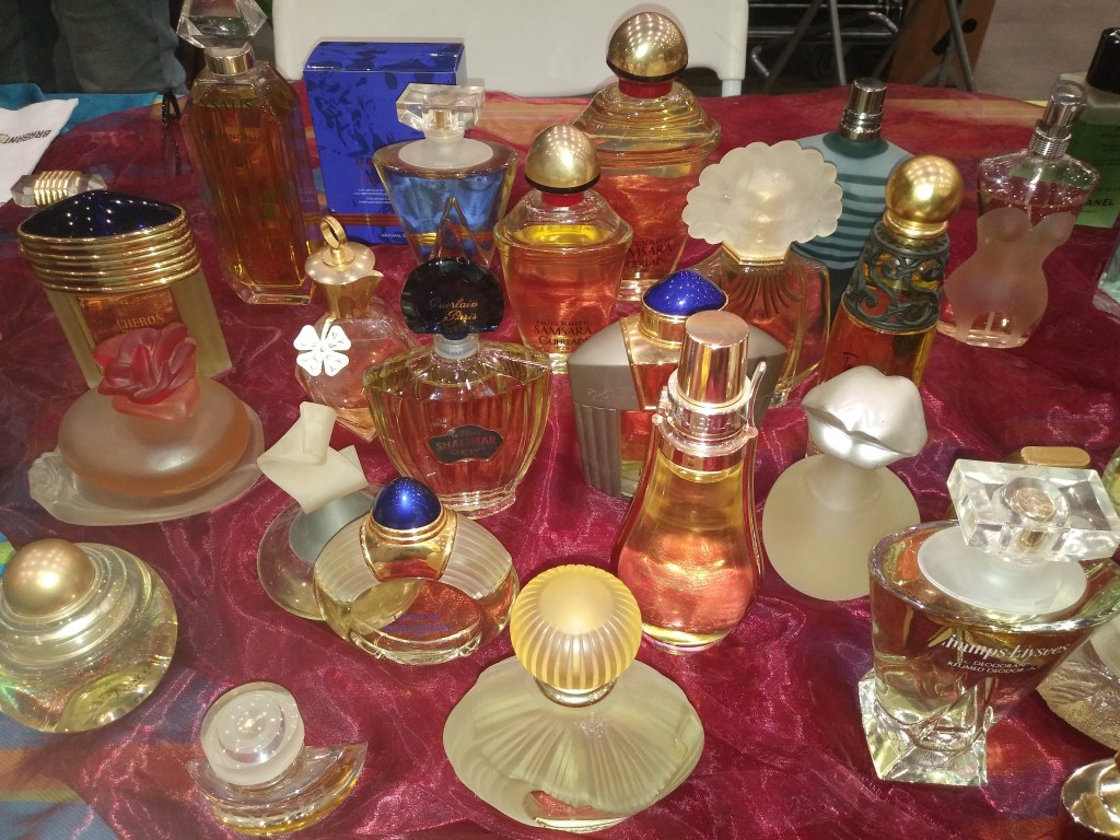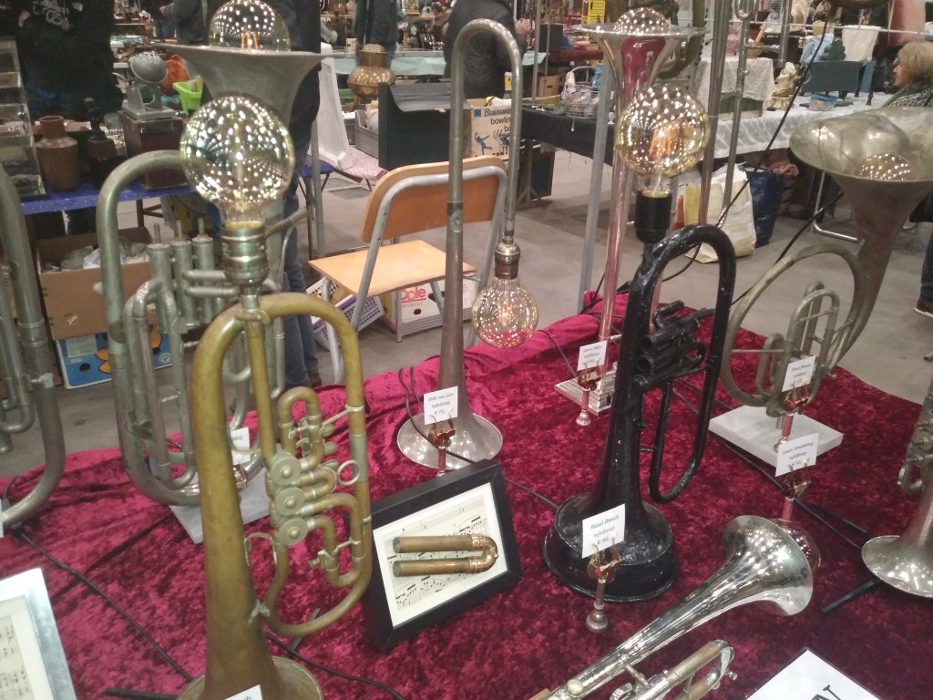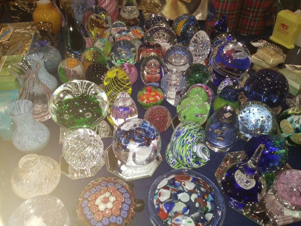 Trwał przez 2 dni. Sobotę i niedzielę. Od 9:00 do 16:30. Dowiedziałam się o nim z fb. Pojechaliśmy w sobotę i o 10:00 byliśmy na miejscu. Pchli targ był na 1 hali, bilet 6 euro. Na miejscu okazało się, że to nie taki typowy targ. Nazwałabym go kolekcjonerskim. Naszym oczom ukazało się mnóstwo klaserów ze znaczkami, monetami, stare numery komiksów i innej prasy, np Playboya. Od groma płyt winylowych, militariów, biżuterii, perfum, porcelanowych lalek, książek, map. Do tego coś dla dużych chłopców, czyli modele aut, kolejek, samolotów, co oczywiście Panu Mężowi się spodobało 🙂 Moją uwagę zwróciły kryształy- widać co nieco na zdjęciu wyżej. To były PRAWDZIWE kryształy! Świeciły się niesamowicie! Oprócz tradycyjnych półmisków i kieliszków, znaleźć można było cudne figurki zwierząt, np papugi, żaby. Drugą rzeczą, na widok której zaświeciły mi się oczy, to emaliowane kanki na mleko, dzbanki, rondelki, kubki. Wszystko w teraz modnym, rustykalnym stylu. Ceny zawrotne! I pomyśleć, że kiedyś na każdej wsi, w każdym domu było tego pełno. Nie zdziwiło by mnie, gdybym zobaczyła tam nawet meble z PRLu 🙂 Ogólnie dostaliśmy oczopląsu!