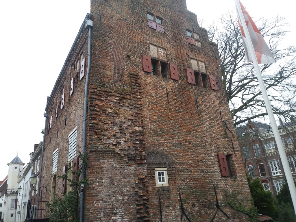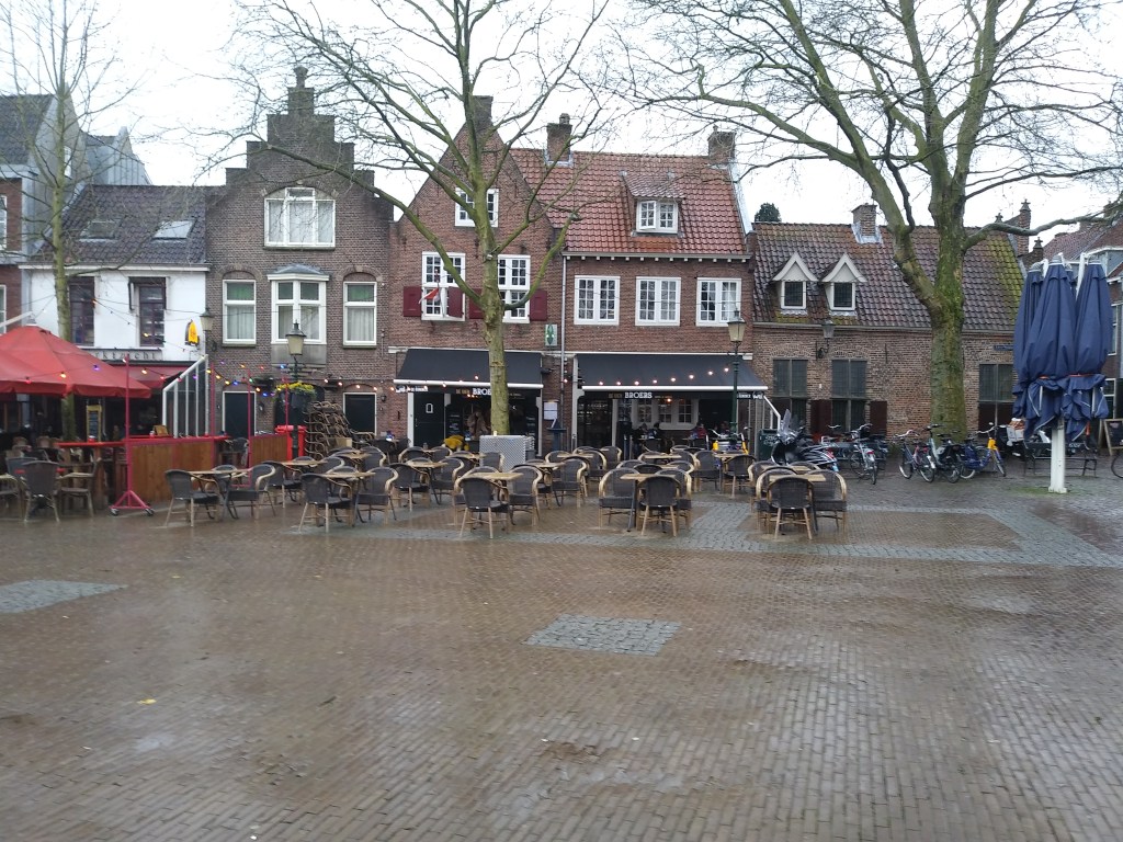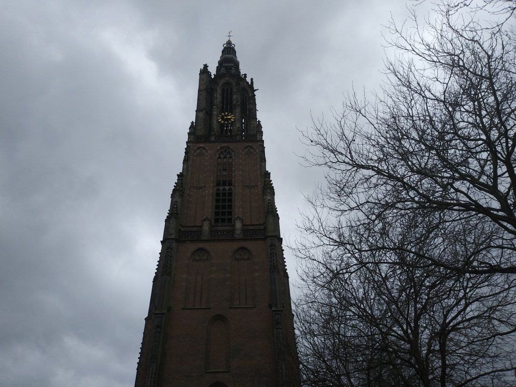 Pierwsze, co rzuciło mi się w oczy, to znowu urocze i klimatyczne uliczki i piękne kamienice. Centrum miasta stanowi oczywiście plac- rynek De Hof. Znajduje się tam wieża kościoła Najświętszej Marii Panny. Zbudowana została w stylu późnogotyckim, wraz z barokowym hełmem liczy 98,33 metry wysokości. Jest trzecią, co do wysokości wieżą w Holandii (o 3ech najwyższych wieżach zrobię oddzielny wpis). Potocznie jest zwana Lange Jan, czyli długi Jan. Wieża była częścią kościoła, który wyleciał w powietrze. To właśnie tutaj wyznaczono kiedyś środek geograficzny kraju 🙂