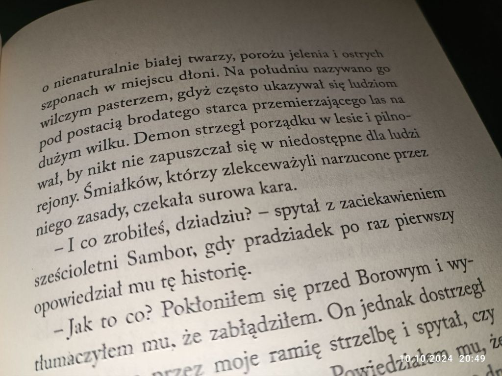 Główny bohater – Sambor, wydaje się nie być zbyt sympatycznym człowiekiem. Złożyło się na to jego dzieciństwo, praca w policji a potem tragedia, do której poniekąd sam doprowadził. Wszystko, strona po stronie, wychodzi na wierzch… Jak to się mówi: ręka rękę myje a niektórzy nie są tymi, za których się ich uważa. Porządny okazuje się być gnojem a osoba brana za złą lub dziwaka jest dobrym człowiekiem. W tej powieści od początku wszystko jest dziwne, bo na przykład mamy powiązanie z bóstwem słowiańskim. A co za tym idzie, zastanawiamy się, co ma wspólnego Borowy z tragedią rodziny głównego bohatera. A Sambora nawet polubiłam. Okazuje się, że nie jest facetem bez uczuć, cynikiem i dupkiem, którego interesuje tylko zaglądanie do kieliszka.